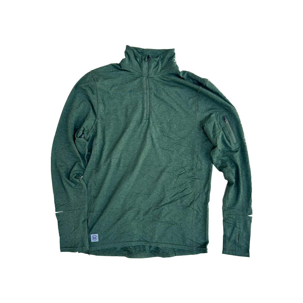Standard fit ¼ pullover with detailed features and an ultra-soft feel. Features include a pull-cord front chest zipper, detailed stitching for a watch, thumb holes, exterior stash side pocket on the sleeve. Moisture wicking, quick dry, UPF50+, created for layering as a single piece.